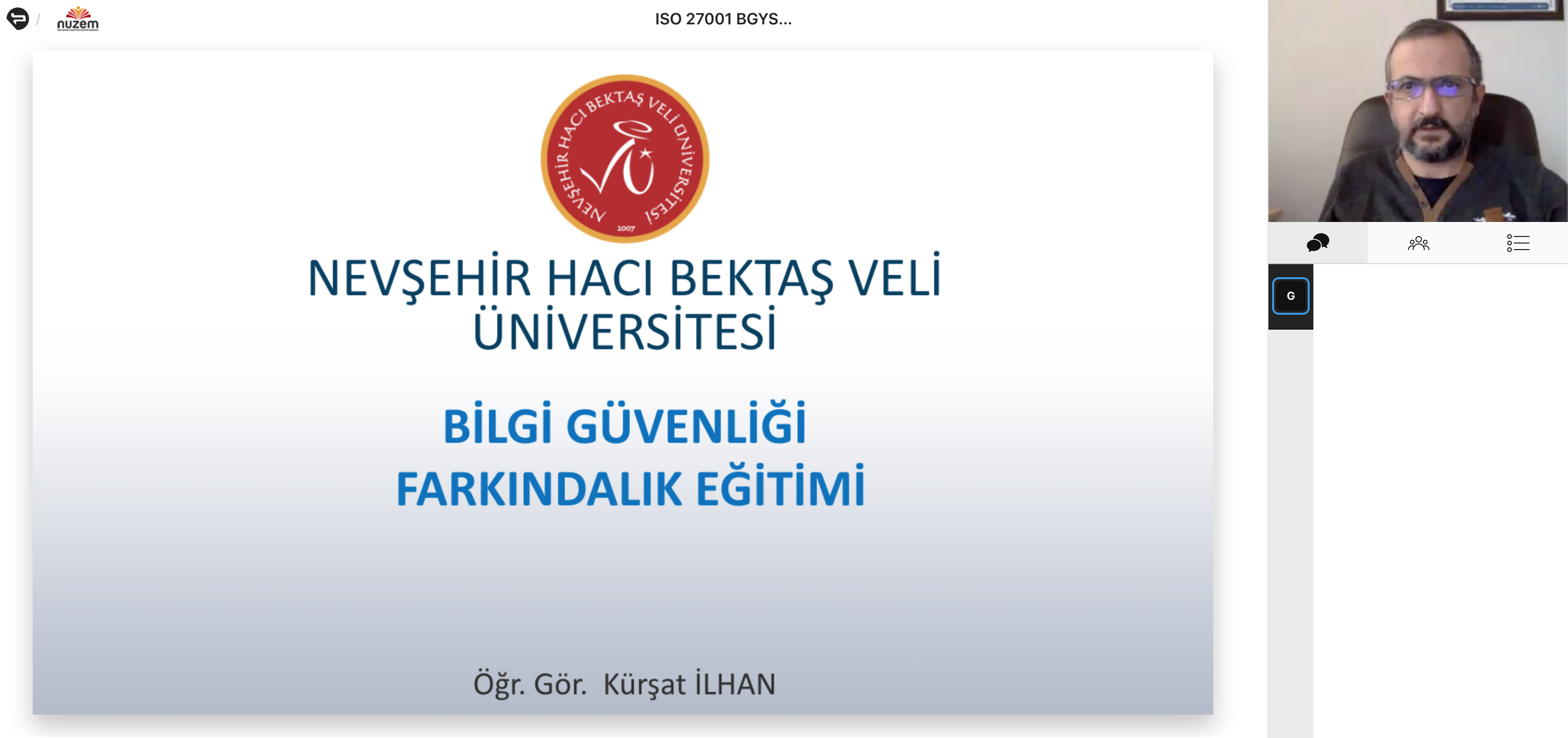 KAPSAM Müdürü Öğr. Gör. Kürşat İLHAN tarafından Üniversitemiz Akademik ve İdari personellerinin kartılımı ile online Bilgi Güvenliği ve Farkındalık Eğitimi verildi.
